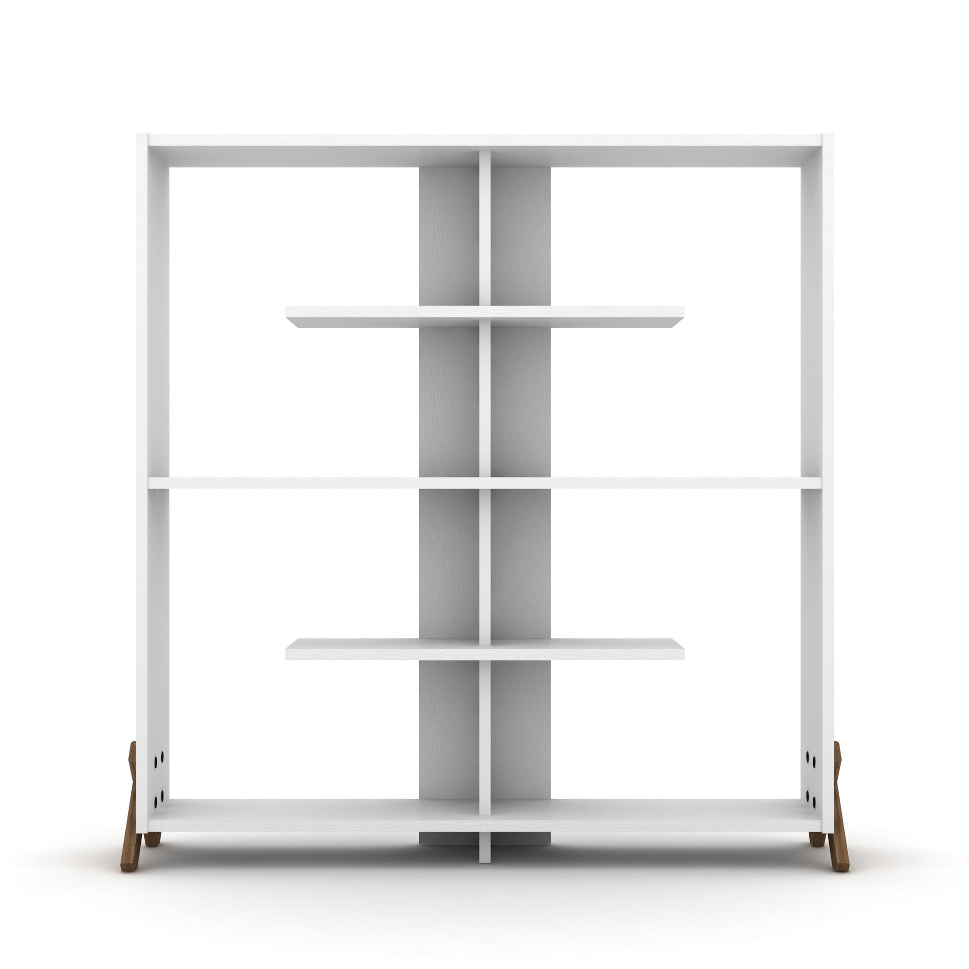 Furnish Home Store Kipp Wood Frame Etagere Open Back 6 Shelves Bookcase Industrial Bookshelf for Office and Living Rooms Modern Bookcases Large Bookshelf Organizer, Walnut/White