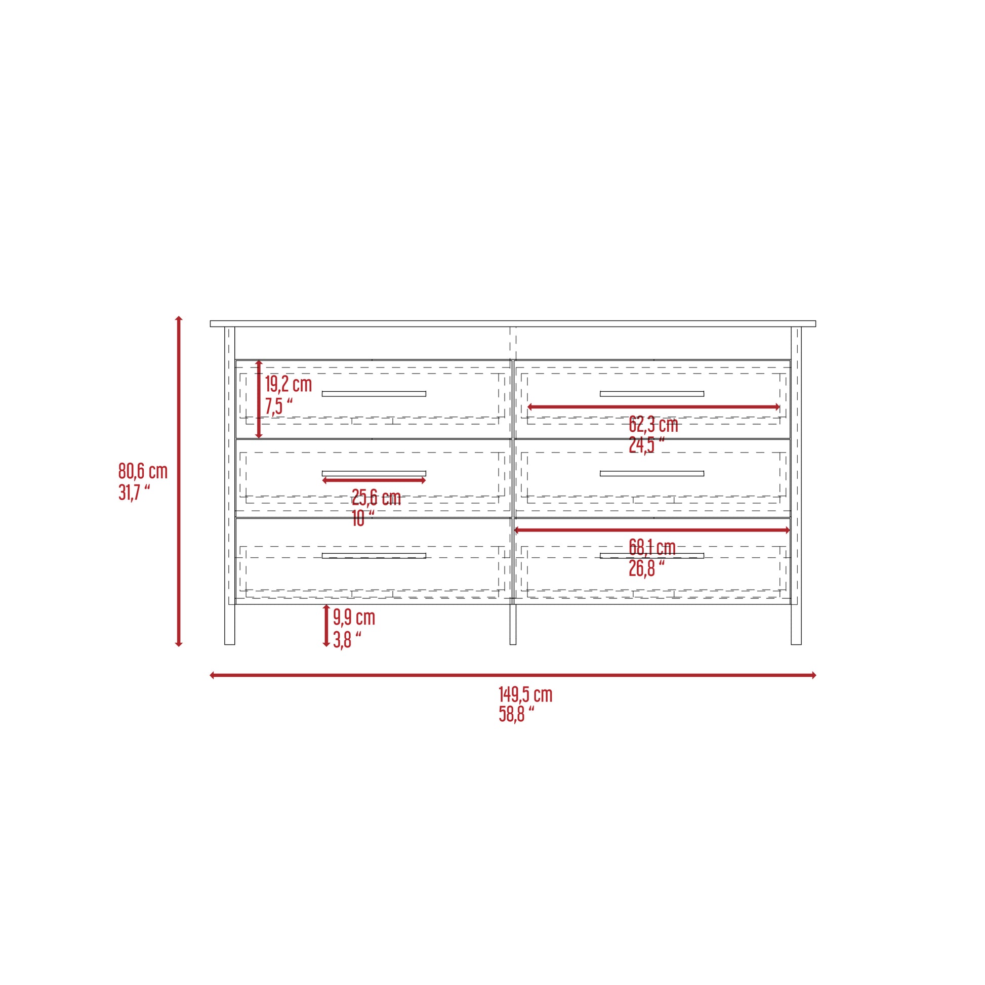 Hms 6 Drawer Double Dresser, Four Legs, Superior Top -White