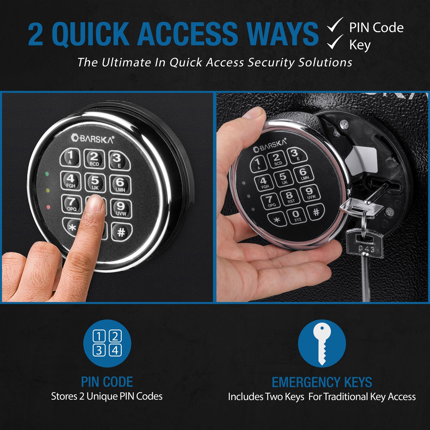 - ? Advanced Locking Mechanism - It features a reliable electronic keypad lock with a backup key for added security. The digital keypad allows you to set your own unique PIN code for quick and secure access.