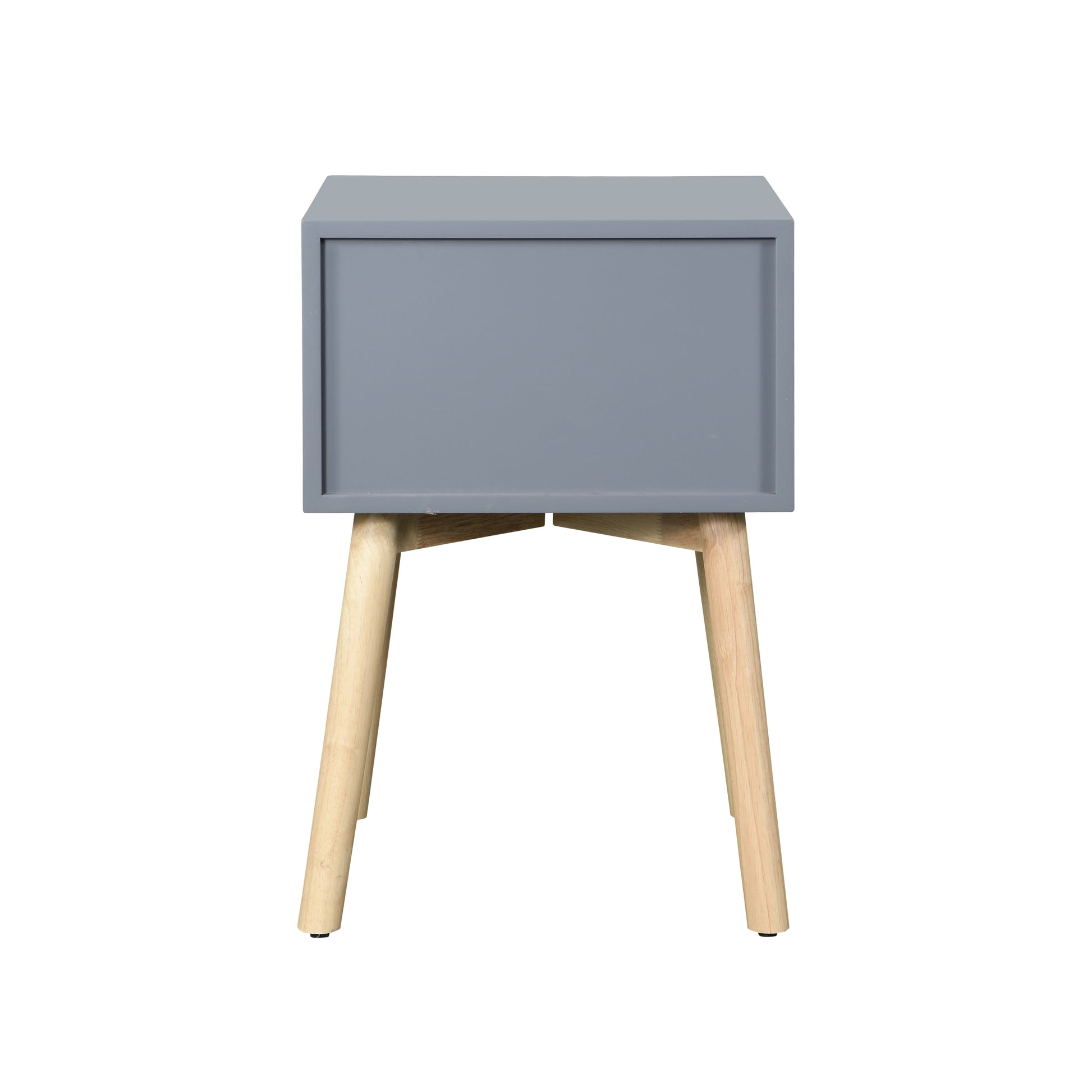 Side Table,Bedside Table with 2 Drawers and Rubber Wood Legs, Mid-Century Modern Storage Cabinet for Bedroom Living Room, Gray