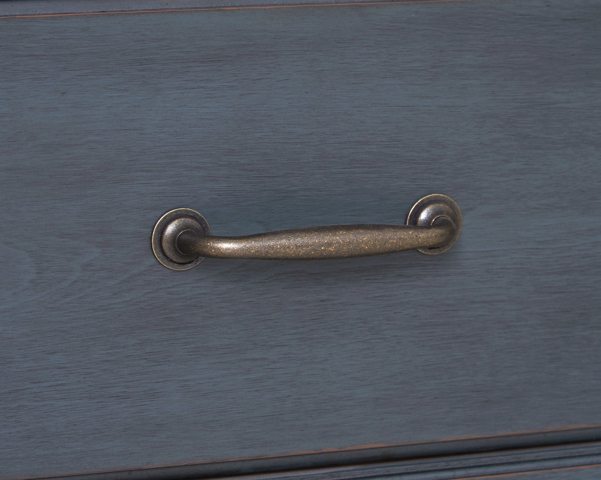 This King Size Bed boasts a refreshing coastal twist on traditional style. Skillfully crafted from Rubberwood Solids and Birch Veneers, the subtle distressing, Corduroy Blue finish and Antique Pewter hardware give this Bed an updated look with a timeless heirloom feel. Featuring a sleigh headboard with USB ports and a storage footboard, this King Size Bed will be a beautiful focal point for main or spare bedroom. Just like Baseball, Apple Pie and Rock & Roll, this storage bed will become a beloved favorite in your home. Minimal assembly is required to join the side rails to the headboard and footboard.