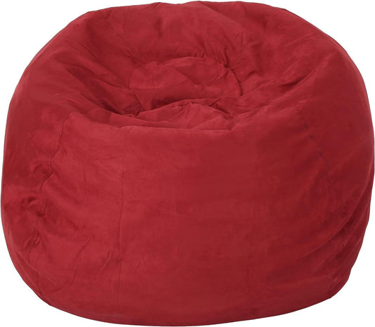Minky Velvet Bean Bag Chair, Red-3ft Plush Floor Chair for Kids and Adults w/ Washable Cover, Lounge Chair with Stretchable Fabric, Comfy Bedroom Chair, Filled with Shredded and Memory Foam.