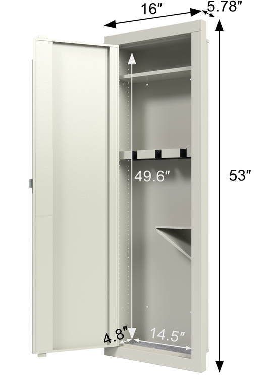 53" Fingerprint Touch Panel In-Wall Safe,Hidden Wall Gun Safe for Rifles with Adjustable Shelves,Assembled Storage Multifunctional Wall Safe for Firearm and Valuables (White-Fingerprint)